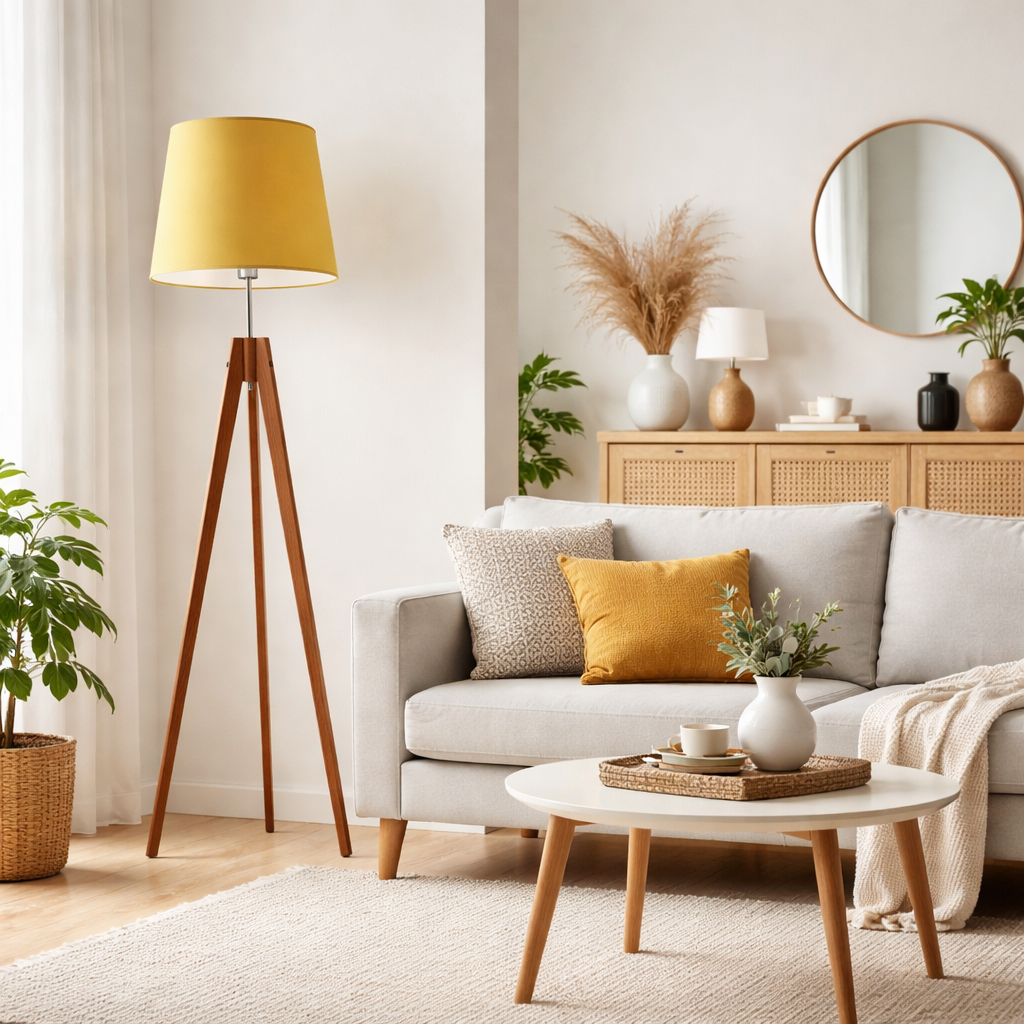 Bestseller, który podbija rynek! Nowoczesna, drewniana a zarazem minimalistyczna i delikatna – oto lampa podłogowa ARUBA. Uwagę przykuwa stelaż przypominający statyw aparatu fotograficznego. Lampa stojąca na drewnianym trójnogu ma prostą, a zarazem bardzo interesującą formę. Hipnotyzuje niewymuszonym stylem i wysublimowaną elegancją. Idealnie wpisze się w konwencję nowoczesnego ale i klasycznego wnętrza. Drewniana lampa podłogowa rewelacyjnie odnajdzie się w pomieszczeniach biurowych, gabinetach, nowoczesnych hotelach, a także w zaciszu domowym. Szczególnie efektownie wyglądać może w salonie czy sypialni. Dodatkowym atutem tego modelu drewnianej lampy stojącej jest 2,5 m przewód ukryty w jednej z nóg oprawy. Dzięki takiemu zabiegowi lampa z drewna zyskuje dodatkowe punkty za estetykę. Oprawa wyposażona jest również we włącznik nożny ułatwiający użytkowanie.