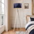 Drewniana lampa stojąca na trzech nogach LAGOS GOLD w stylu skandynawskim
