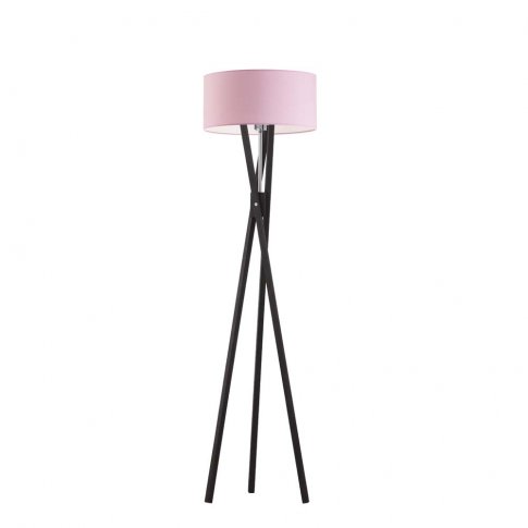 Drewniana lampa stojąca tripod ELX z designerskim kloszem