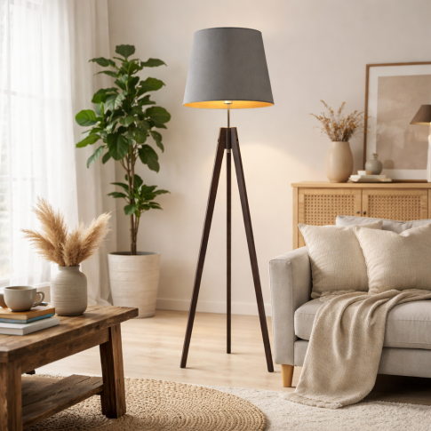 Drewniane oświetlenie podłogowe to mast - have w przestrzeniach inspirowanych stylem skandynawskim, rustykalnym czy w ostatnim czasie coraz bardziej popularnym boho. W nowoczesnych aranżacjach poszukujemy rozwiązań łączących estetykę z funkcjonalnością, a dekoracyjne lampy podłogowe z drewna spełniają te kryteria doskonale, dlatego warto wprowadzić je do swojego domu. Ich wyjątkowy design sprawia, że pasują zarówno do nowoczesnych, jak i klasycznych wnętrz. Naturalne materiały i uniwersalna kolorystyka tworzą harmonię i spokój, nadając pomieszczeniu unikalny charakter. Drewniana lampa stojąca na trójnogu ARUBA GOLD jest idealnym wyborem do stworzenia przytulnego kącika czytelniczego w Twoim wnętrzu. Ulokowanie oprawy obok ulubionego fotela zapewni łatwy dostęp do światła, a co za tym idzie umożliwi komfortowe czytanie i relaks.