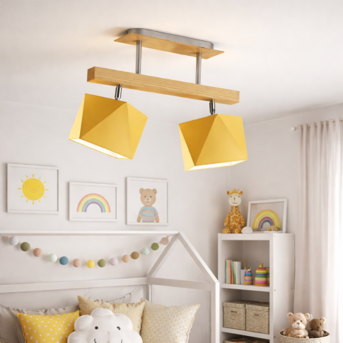 Plafon z geometrycznymi abażurami ASTIR dobrze prezentuje się we współczesnych aranżacjach. Świecąc, pięknie eksponuje dodatki, a wyłączony, tworzy z nowoczesnymi meblami harmonijną całość. Plafon drewniany ASTIR możesz zawiesić nad stołem w jadalni lub w przestronnym salonie. Nic nie stoi także na przeszkodzie, aby ASTIR oświetlał Twoją kuchnię. 3-punktowy plafon drewniany to dobre uzupełnienie także wnętrz dziecięcych czy młodzieżowych. Szukasz oświetlenia do dużego pomieszczenia? Umieść obok siebie dwie lampy sufitowe ASTIR i ciesz się przytulnym i wyraźnym światłem w dużej przestrzeni!