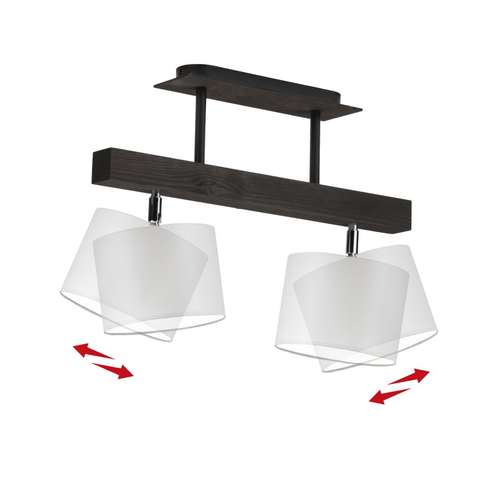 Lampa sufitowa EPIR od LYSNE.PL zachwyca niebanalną budową w postaci złożonego stelaża oraz dwóch osadzonych na przegubach abażurów o wymiarach 12 cm x 17,5 cm. Tak skomponowany projekt oświetlenia mierzy 40 cm wysokości i 47 cm szerokości. Gustowna konstrukcja lampy, zwieńczona klasycznymi kloszami doskonale współgra z wysokogatunkowymi materiałami, wykorzystanymi w projekcie. Drewno, metal oraz tkanina holenderska to komponenty, które zapewniają lampie długoletnią trwałość i niebanalny, ekstrawagancki wygląd. Lampa sufitowa EPIR ma 24-miesięczną gwarancję producenta, a jej bezpieczeństwo potwierdzone jest deklaracją zgodności CE oraz certyfikatem niepalności. Do wyboru mamy kilkanaście wersji kolorystycznych: biały, ecru, jasny szary (gołębi), miętowy, musztardowy, jasny różowy, jasny fioletowy, beżowy, szary stalowy, czerwony, niebieski, fioletowy, zieleń butelkowa, granatowy, grafitowy, brązowy, czarny oraz szary melanż (tzw. beton). Dostępnych jest także 5 rodzajów stelaża: biały, dąb, mahoń, heban, popielaty. Drewniana plafoniera EPIR jest dostosowana do żarówek z dużym gwintem E27 o maksymalnej mocy 60W, ledowych i energooszczędnych o klasach energetycznych od A do G.