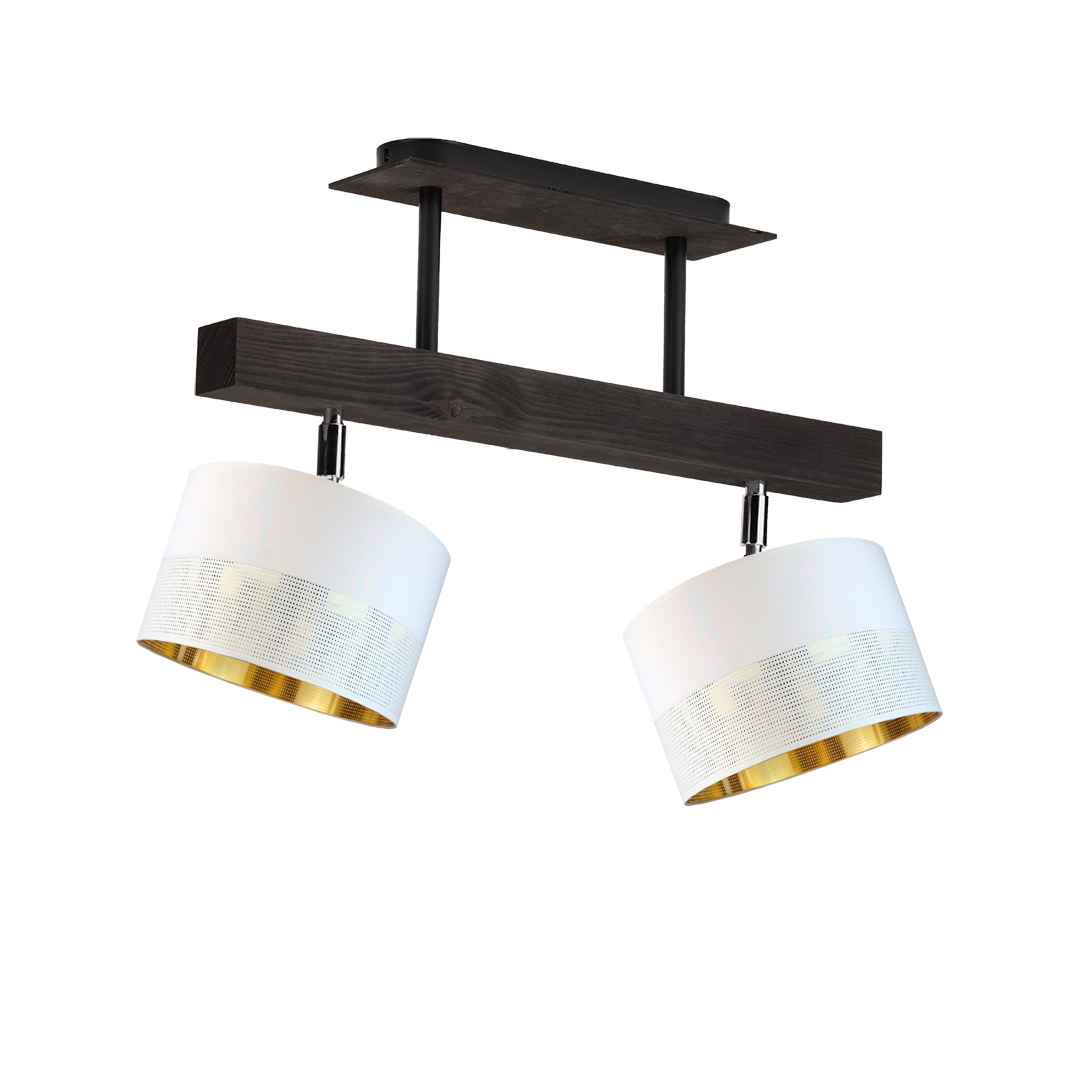 EPIR GLAM to doskonały balans między ciepłem drewna a wyrafinowanym charakterem błyszczących abażurów. Dzięki bogatej palecie kolorów kloszy możesz dopasować lampę sufitową na drewnianej belce do wnętrz w stylu glamour, loft czy nowoczesnym. Jako drewniana lampa sufitowa z przegubowymi abażurami łączy surowość naturalnych materiałów z elegancją tkaninowych kloszy. Jej design sprawia, że świetnie odnajdzie się w przestrzeniach inspirowanych industrialnym stylem, podkreślając charakter wnętrz z betonowymi ścianami czy metalowymi dodatkami. Z kolei w aranżacjach glamour 2-płomienna lampa sufitowa z drewna doda wnętrzu ciepła i elegancji, tworząc spójną i stylową całość. To idealny wybór dla miłośników niebanalnych połączeń i ponadczasowego designu. Wybierz jeden z pięciu odcieni stelaża (biały, dąb, mahoń, heban, popielaty) i stwórz własną, unikalną wersję plafonu.