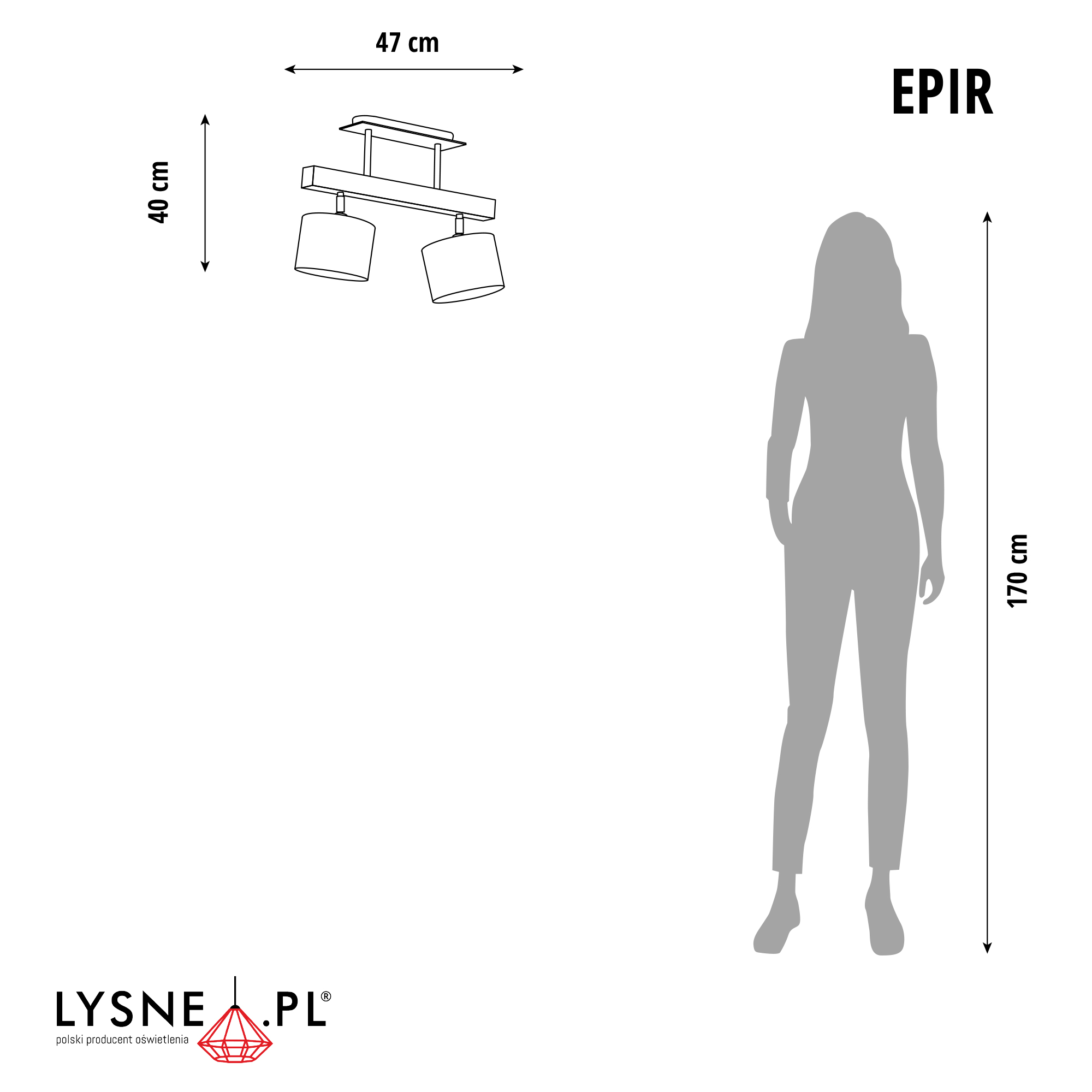 Lampa sufitowa EPIR od LYSNE.PL zachwyca niebanalną budową w postaci złożonego stelaża oraz dwóch osadzonych na przegubach abażurów o wymiarach 12 cm x 17,5 cm. Tak skomponowany projekt oświetlenia mierzy 40 cm wysokości i 47 cm szerokości. Gustowna konstrukcja lampy, zwieńczona klasycznymi kloszami doskonale współgra z wysokogatunkowymi materiałami, wykorzystanymi w projekcie. Drewno, metal oraz tkanina holenderska to komponenty, które zapewniają lampie długoletnią trwałość i niebanalny, ekstrawagancki wygląd. Lampa sufitowa EPIR ma 24-miesięczną gwarancję producenta, a jej bezpieczeństwo potwierdzone jest deklaracją zgodności CE oraz certyfikatem niepalności. Do wyboru mamy kilkanaście wersji kolorystycznych: biały, ecru, jasny szary (gołębi), miętowy, musztardowy, jasny różowy, jasny fioletowy, beżowy, szary stalowy, czerwony, niebieski, fioletowy, zieleń butelkowa, granatowy, grafitowy, brązowy, czarny oraz szary melanż (tzw. beton). Dostępnych jest także 5 rodzajów stelaża: biały, dąb, mahoń, heban, popielaty. Drewniana plafoniera EPIR jest dostosowana do żarówek z dużym gwintem E27 o maksymalnej mocy 60W, ledowych i energooszczędnych o klasach energetycznych od A do G.