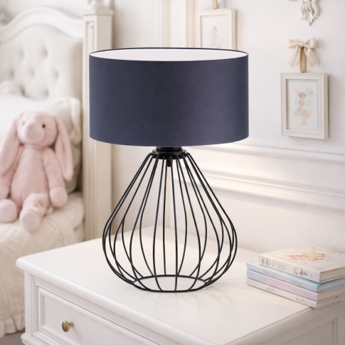 Druciana lampka nocna z granatowym abażurem LUKKA lampka nocna metalowa na stolik nocny
