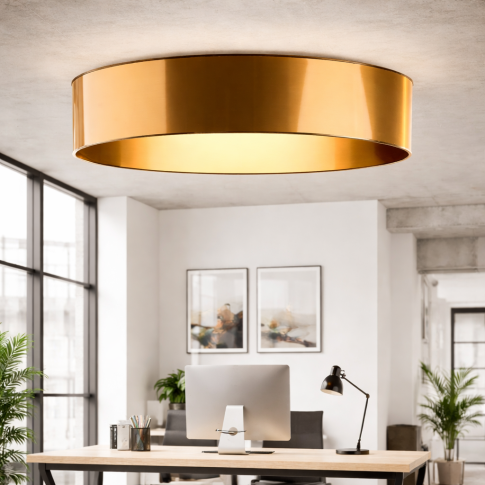 Dzięki możliwości wyboru abażura w kolorze złotym lub miedzianym, lampa sufitowa MEDINA MIRROR może stać się subtelnym akcentem lub wyrazistą dekoracją wnętrza. Ciepłe odcienie klosza pięknie odbijają światło i nadają pomieszczeniu elegancki, przytulny charakter. To idealny wybór dla osób poszukujących eleganckiej lampy sufitowej do salonu lub sypialni.