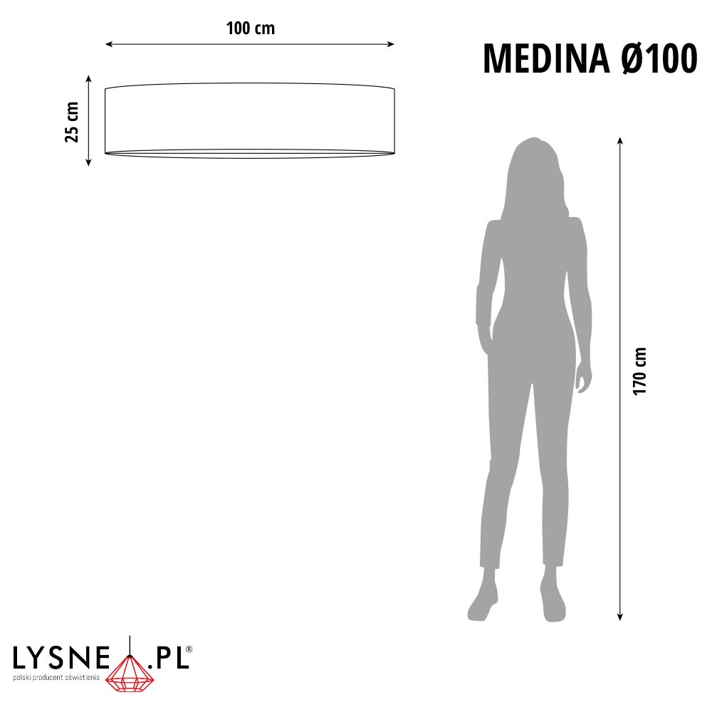 Średnica 100 cm sprawia, że duża lampa sufitowa MEDINA MIRROR doskonale wypełnia przestrzeń i nadaje wnętrzu reprezentacyjny charakter. To idealne rozwiązanie do dużych salonów, otwartych stref dziennych oraz przestrzeni komercyjnych. Plafon należy do kolekcji MIRROR, a jego stylistycznym uzupełnieniem są plafony DUBAJ MIRROR dostępne w mniejszych średnicach (30, 40, 50 i 60 cm), co pozwala stworzyć spójną aranżację oświetlenia w całym obiekcie.