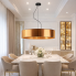 Elegancka lampa wisząca PORTO dostępna jest w wariantach abażura: złotym oraz miedzianym, co pozwala idealnie dopasować ją do aranżacji wnętrza. Opcjonalne denko z akrylowego szkła pełni podwójną funkcję – rozprasza światło oraz estetycznie maskuje wnętrze abażuru, zwiększając komfort użytkowania.