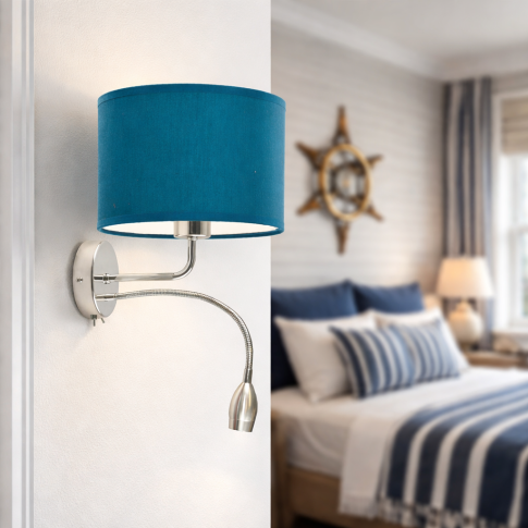 Designerska lampa naścienna CAPRI to oświetlenie łączące elegancki styl z funkcjonalnymi udogodnieniami. Niezależnie, czy poszukujesz kinkietu do sypialni, lampy do biura, kinkietu łazienkowego czy kinkietu do hotelu wszędzie będzie się idealnie prezentować. Oprócz efektownego wyglądu zachwyca ciepłą barwą światła z żarówki i panelu LED. Dodatkowa funkcja wprowadzająca punktowe światło czyni z tego kinkietu idealną lampę do czytania w łóżku. Ruchomy reflektor umiejscowiony w giętkim panelu led zasilany jest przez moc 5W. Natomiast główne źródło światła przystosowane jest do źródeł światła o klasach energetycznych od A do G - tradycyjnych żarówek o mocy 60W lub żarówek LED mocowanych na tzw. duży gwint E27. Zamontowanie kinkietu w pokoju dziecięcym ułatwi oświetlenie nawet trudno dostępnych zakamarków. Metalowy kinkiet z włącznikiem to synonim funkcjonalności połączonej z dziecięcym designem. Kinkiet perfekcyjnie zgrywa się z umieszczonymi w pomieszczeniu dziecięcymi mebelkami, łóżeczkiem i zabawkami malucha. Oświetlenie to wprowadzi do pokoju miłą atmosferę, sprzyjającą relaksowi oraz dziecięcym zabawom.