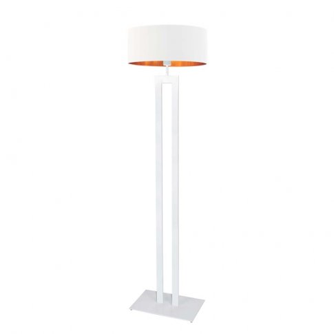 Biała lampa podłogowa z abażurem ze złotym wnętrzem KALIFORNIA GOLD oferuje szeroki wybór kolorów abażurów, co pozwala na perfekcyjne dopasowanie do każdego wnętrza. Dostępne kolory to biały z połyskliwą amplą, szary stalowy, zieleń butelkowa, granatowy oraz czarny – wszystkie ze złotym, półmatowym wnętrzem. Dodatkowo model ten wyposażono w podstawę w trzech kolorach: biały, srebrny oraz czarny, co pozwala na jeszcze większą personalizację i dopasowanie do Twojej przestrzeni. Elegancka lampa stojąca do salonu posiada miejsce na żarówkę o gwincie E27 i maksymalnej mocy 60W, co umożliwia zastosowanie żarówek LED, tworząc oszczędne i efektywne źródło światła.