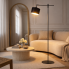 Elegancka czarna lampa stojąca do czytania w salonie SERES z regulacją kąta światła