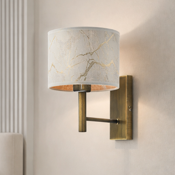 Kinkiet ścienny z abażurem TEGU to elegancka propozycja dla osób, które szukają stylowego i funkcjonalnego oświetlenia do domu. Model ten wyróżnia się wyjątkowym kloszem wykonanym z tkaniny imitującej marmur, która subtelnie rozprasza światło i nadaje lampie ekskluzywnego charakteru. Dzięki prostej formie nowoczesny kinkiet doskonale komponuje się z aranżacjami minimalistycznymi, nowoczesnymi oraz eleganckimi wnętrzami w stylu glamour.