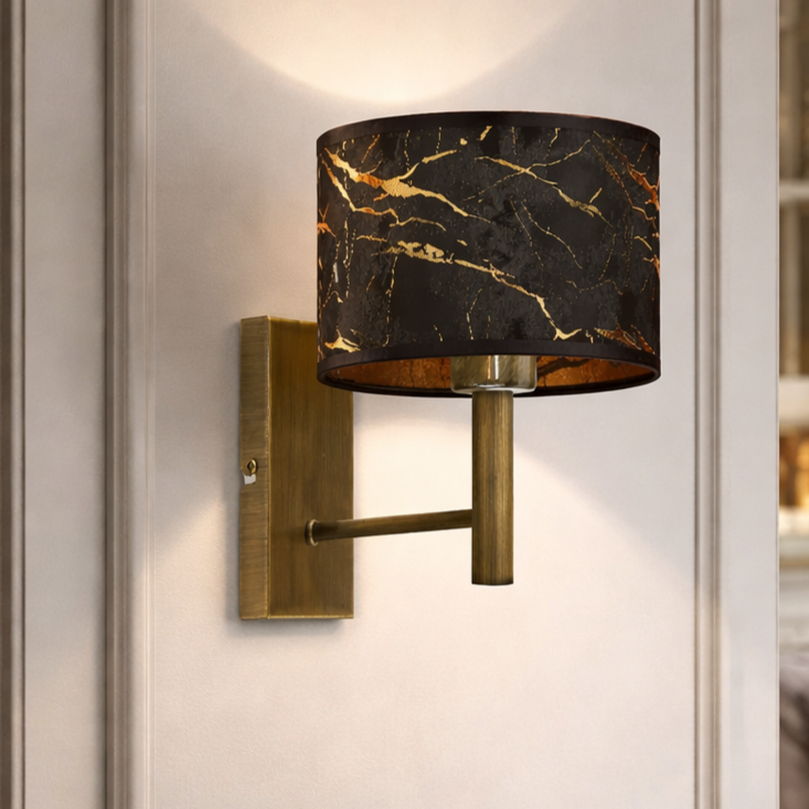 | Materiał | stelaż - elementy metalowe, abażur - tkanina imitująca marmur |