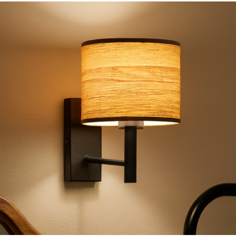 Dekoracyjny kinkiet TEGU ECO to polskie oświetlenie, które w prosty sposób odmienia wnętrze nadając mu ciepła i przytulności. Cylindryczny abażur o wymiarach 12 x 17,5 cm z subtelnym wzorem drewnianych słojów sprawia, że światło rozchodzi się delikatnie ku górze i dołowi, podkreślając fakturę tkaniny i tworząc elegancką grę cieni. Dzięki temu nawet niewielki kinkiet ścienny staje się wyrazistym elementem dekoracyjnym. To idealne rozwiązanie dla osób, które cenią minimalizm, ale chcą wprowadzić do domu naturalne akcenty i wyjątkowy nastrój.