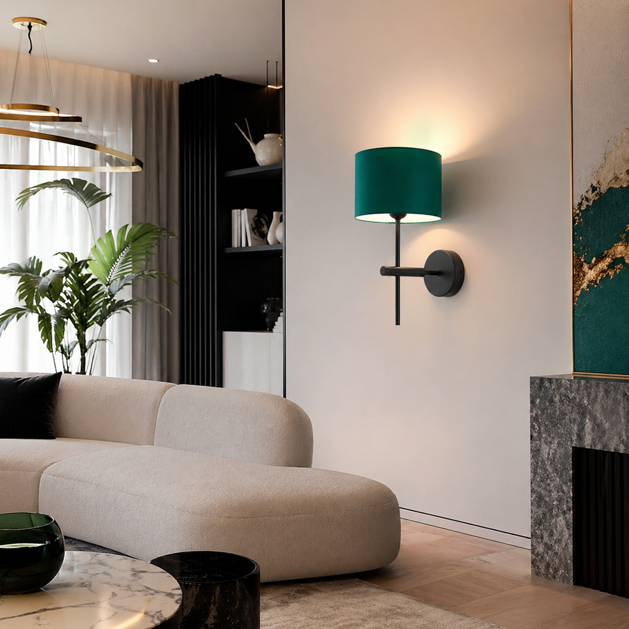 Pałacowy kinkiet ścienny PAFOS to stylowe i funkcjonalne oświetlenie ścienne, które doskonale wpisuje się w aktualne trendy wnętrzarskie. Ten nowoczesny kinkiet z abażurem sprawdzi się idealnie jako kinkiet do salonu, kinkiet do sypialni, a także jako praktyczne oświetlenie do przedpokoju lub korytarza. Smukła konstrukcja o wysokości 40 cm oraz elegancki abażur (12 × 17,5 cm) zapewniają lekkość wizualną i przytulne, rozproszone światło. Szeroka gama kolorystyczna – od klasycznej bieli, ecru i szarości, po modne kolory jak zieleń butelkowa, granat, musztardowy czy czarny – sprawia, że ten kinkiet dekoracyjny łatwo dopasujesz do każdej aranżacji wnętrza.