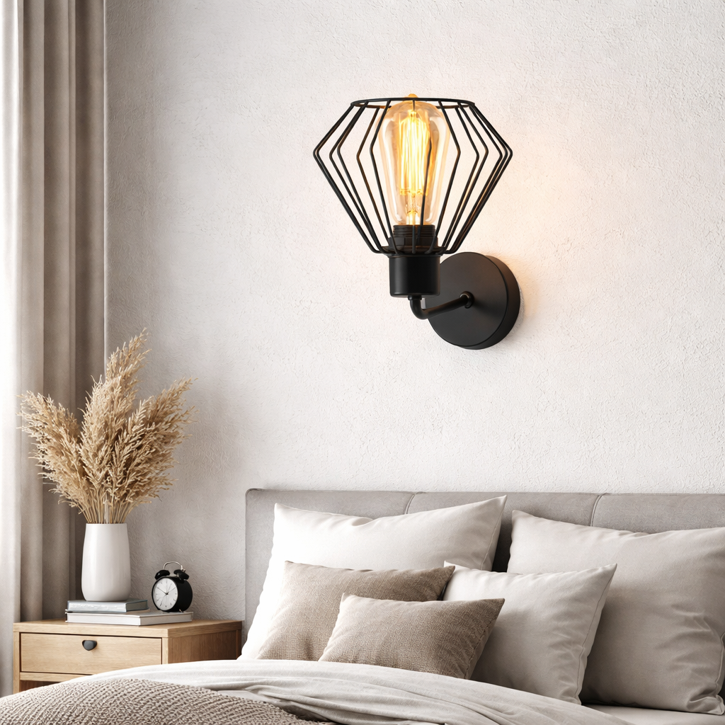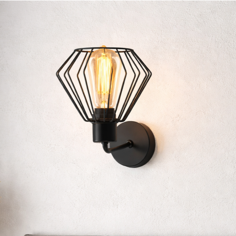 Zakrzywiony stelaż wykonany jest z wytrzymałego metalu i w stałej sprzedaży dostępny jest w 2 wariantach kolorystycznych. Druciany klosz w połączeniu z loftową żarówką Edisona cudownie przepuszcza światło tworząc piękne efekty świetlne na otaczających go ścianach i elementach wyposażenia wnętrz. Metalowe klosze w tym modelu kinkietu występują w 2 kolorach: białym oraz czarnym.