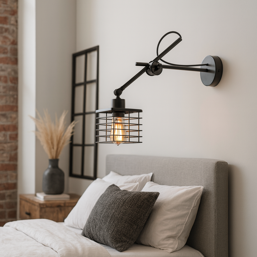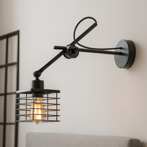 Odpowiedni dobór światła sztucznego odgrywa niemałą rolę w każdych aranżacjach wnętrz, szczególnie tych wzorowanych na halach fabrycznych, charakteryzujących się dość trudną do oświetlenia przestrzenią. Czarny kinkiet industrialny BREMA LOFT został zaprojektowany w taki sposób, aby zachwycać jako gustowna ozdoba industrialnych wnętrz, ale także jako funkcjonalne oświetlenie, które poradzi sobie nawet z najtrudniejszymi do oświetlenia pomieszczeniami. Metalowy, druciany, kwadratowy klosz oraz stelaż z regulowanym ramieniem jest więc wprost idealnym rozwiązaniem.