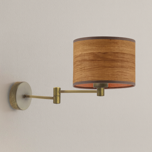 Światło wydobywające się spod fornirowego abażura daje ciepły i przyjemny blask. Regulowany kinkiet do sypialni emanuje rozproszonym, miękkim i łagodnym światłem. Zastosowanie w oprawie energooszczędnej żarówki LED sprawi, że kinkiet stanie się ekonomicznym elementem wyposażenia sypialni, niedrogim w utrzymaniu i niezwykle funkcjonalnym. Żarówka mocowana jest na gwint E27 – tzw. duży gwint.