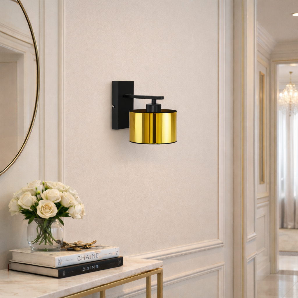 Oryginalna lampa ścienna ze złotym abażurem SPLIT MIRROR to doskonały wybór dla osób, które pragną wprowadzić do swoich wnętrz odrobinę luksusu i szyku. W stylu glamour jego złoty lub miedziany abażur pięknie komponuje się z błyszczącymi dodatkami takimi jak kryształowe żyrandole, lustra w zdobionych ramach czy aksamitne tkaniny. Subtelny połysk kinkietu rozświetla przestrzeń, nadając jej prestiżu i wyjątkowego charakteru. Czarne detale stelaża oraz lamówka abażuru wprowadzają natomiast element eleganckiego kontrastu, który podkreśla wyrafinowany styl wnętrza. Równie efektownie czarno-złoty kinkiet SPLIT MIRROR prezentuje się w przestrzeniach industrialnych. Połączenie czarnej metalowej podstawy z metalicznym blaskiem abażuru tworzy harmonijny kontrast, który doskonale współgra z surowymi materiałami takimi jak beton, cegła czy stalowe elementy. To oświetlenie wprowadza do wnętrz industrialnych nie tylko funkcjonalność ale również wizualne ocieplenie dodając im elegancji i klasy.