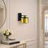 Nowoczesny kinkiet SPLIT MIRROR to wyrazisty i elegancki element oświetlenia, który idealnie wpisuje się w najmodniejsze trendy wnętrzarskie. Jego geometryczna podstawa wykonana jest z wysokiej jakości metalu w klasycznej czerni, co podkreśla nowoczesny i wyrafinowany charakter lampy. Cylindryczny abażur dostępny w dwóch wariantach – złotym lub miedzianym – wykończony został subtelną czarną lamówką, co nadaje mu wyjątkowej elegancji i wyrazistości. Wnętrze abażuru pokryto błyszczącą folią PVC, która skutecznie odbija światło, tworząc ciepły i przytulny nastrój w pomieszczeniu.