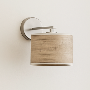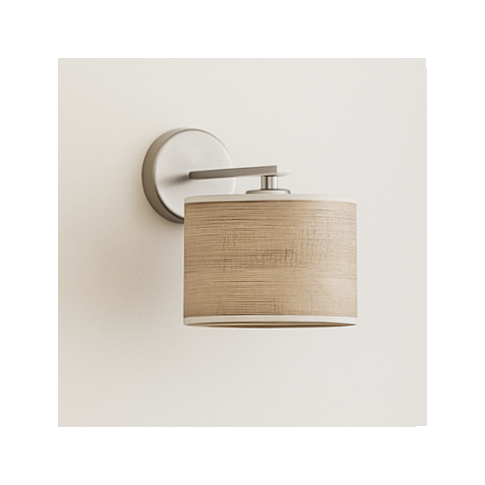 Nowoczesny kinkiet ścienny LUANDA ECO to najnowsza propozycja polskiego producenta oświetlenia LYSNE.PL łącząca subtelną formę z eleganckim wykończeniem. Okrągła, metalowa podstawa i cylindryczny abażur (12x17,5 cm) nadają oprawie prostoty i lekkości, a jednocześnie czynią ją elementem dekoracyjnym. To kinkiet ścienny do sypialni, który świetnie sprawdzi się obok łóżka jako oprawa ścienna do salonu doświetlająca przestrzeń czy kinkiet do przedpokoju i holu pełniący funkcję praktyczną i estetyczną. Dekoracyjna lampa ścienna z abażurem LUANDA ECO to także doskonały kinkiet hotelowy tworzący przytulne światło sprzyjające relaksowi.