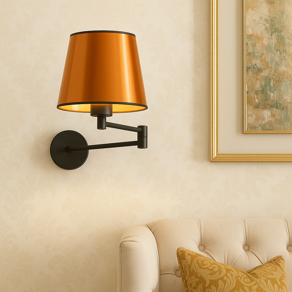 Model nowoczesnej lampy ściennej z długim ramieniem LUGO MIRROR dostępny jest w dwóch wariantach kolorystycznych abażuru – złotym oraz miedzianym, co umożliwia dopasowanie lampy do wnętrz w stylu klasycznym, nowoczesnym, minimalistycznym czy loftowym. Elegancka kolorystyka w połączeniu z czarnym stelażem dodaje kinkietowi wyrazistości i charakteru. Produkt jest fabrycznie nowy w pełni polskiej produkcji, co gwarantuje wysoką jakość wykonania. Dodatkowym atutem jest 24-miesięczna gwarancja producenta oraz dostosowanie lampy do napięcia 230V, co zapewnia bezpieczne i komfortowe użytkowanie.