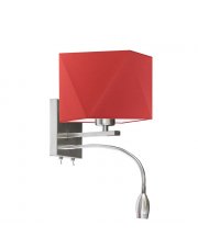 Satynowy kinkiet do pokoju MESSA z czerwonym abażurem