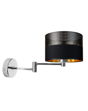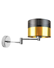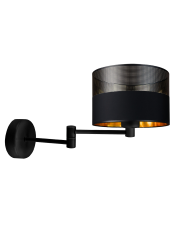 Czarny kinkiet w stylu glamour z regulowanym ramieniem BRAGE GLAM ze złotym kloszem