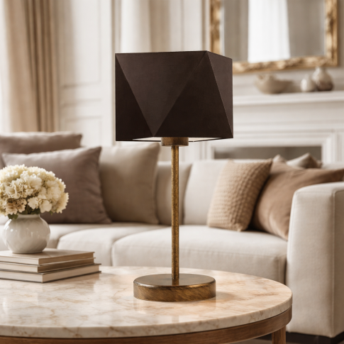 Lampka nocna WUHU od LYSNE.PL — polskiego producenta designerskich lamp z abażurami — wyróżnia się prostą, a jednocześnie bardzo elegancką formą. Składa się ze stabilnego, metalowego stelaża z okrągłą podstawą i klosza z holenderskiej tkaniny tekstylnej, który powstał z inspiracji strukturą diamentu. Materiałowy abażur ma 23-centymetrową przekątną i 16 cm wysokości. Lampka nocna z brązowym abażurem o szerokości 23 cm, w pionie mierzy 43 cm. Dzięki dostępności różnych kolorów klosza (biały, ecru, jasny szary (gołębi), miętowy, musztardowy, jasny różowy, jasny fioletowy, beżowy, szary stalowy, czerwony, niebieski, fioletowy, zieleń butelkowa, granatowy, grafitowy, brązowy, czarny oraz szary melanż (tzw. beton)) oraz sześciu rodzajów powłok stelaża — srebrny, biały, czarny (w standardzie), chrom, stal szczotkowana, stare złoto (wariant dodatkowo płatny), możesz stać się projektantem we własnym domu! Mieszaj kolory i korzystaj z naszych inspiracji! Nowoczesna lampka na stolik nocny z abażurem WUHU jest dostosowana do żarówek z tzw. dużym gwintem (E27) o maksymalnej mocy 60W. Pasują do niej zarówno żarówki LED, jak i źródła światła o klasach energetycznych od A do G. Producent zapewnia 24-miesięczny okres gwarancji na lampkę nocną WUHU.