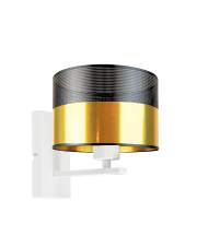 Biały kinkiet ścienny glamour do salonu ELVORA GOLD z abażurem ze złotym wnętrzem