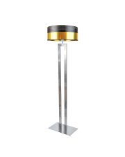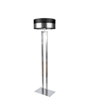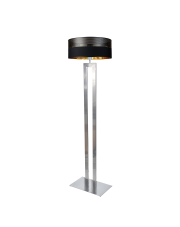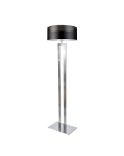 Nowoczesna lampa podłogowa na czarnym stelażu GIZA GLAM ze srebrnym kloszem w stylu glamour