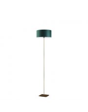 Złota lampa stojąca w stylu urban jungle MEKSYK z abażurem w kolorze butelkowej zieleni