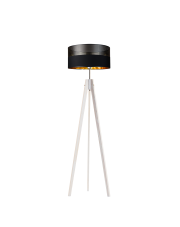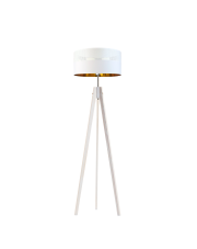 Biała drewniana lampa podłogowa HAITI GOLD złote detale