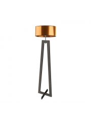 Czarna lampa stojąca z drewna ze złotym kloszem BALI MIRROR