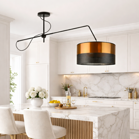 Lampa sufitowa na wysięgniku ruchomym RIO GLAM dostępna jest w szerokiej gamie kolorystycznej. Abażur można wybrać w odcieniach czerni, bieli, złota, srebra lub miedzi natomiast stelaż występuje w trzech klasycznych wariantach: białym, srebrnym i czarnym. Dzięki temu ten model lampy na wysięgniku nad stół idealnie dopasowuje się do różnych stylów wnętrzarskich dodając im elegancji i nowoczesnego charakteru. Jej minimalistyczna, a zarazem wyrafinowana forma sprawia, że jest zarówno dekoracyjnym elementem wnętrza jak i praktycznym źródłem światła, które można łatwo dostosować do własnych potrzeb.