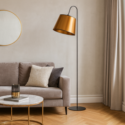 Miedziana lampa podłogowa doskonale sprawdzi się w różnych stylach wnętrzarskich dodając im wyrafinowanego charakteru. W stylu industrialnym będzie idealnym dopełnieniem surowych, loftowych przestrzeni, gdzie kontrastuje z betonem i metalem wnosząc ciepło złotych akcentów. W aranżacjach glamour, jej elegancki blask podkreśli luksusowy charakter wnętrza, współgrając z połyskliwymi materiałami i bogatymi zdobieniami. Z kolei w stylu eklektycznym, czarno-miedziana lampa stojąca stanie się wyjątkowym elementem, który łączy różnorodne elementy wystroju, tworząc harmonijną całość. Niezależnie od wybranego stylu lampa podłogowa z abażurem ze złotym wnętrzem doda wnętrzu klasy i subtelnej elegancji, stając się jednocześnie funkcjonalnym źródłem światła.
