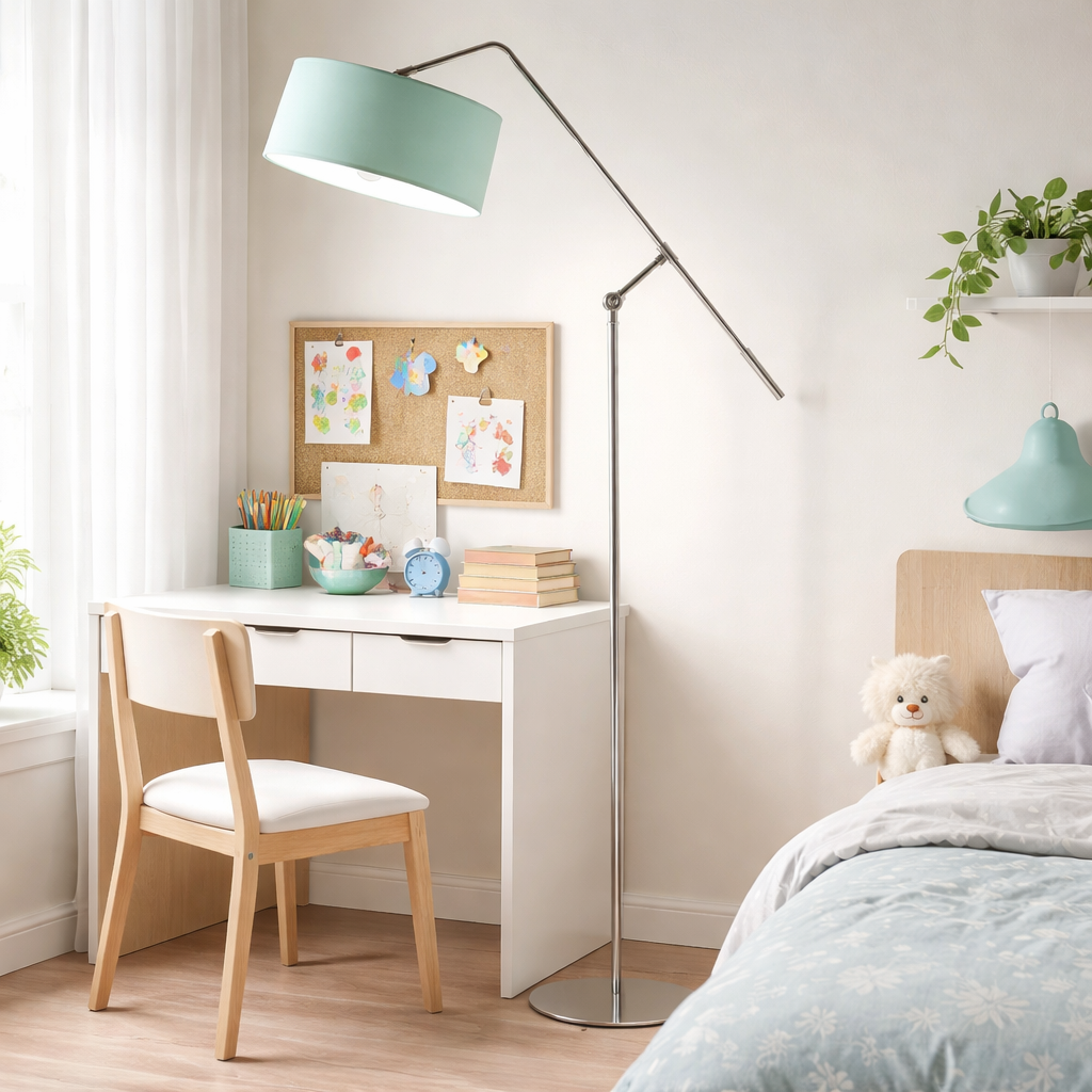 Lampa podłogowa do pokoju chłopca LIBERIA z regulowanym ramieniem