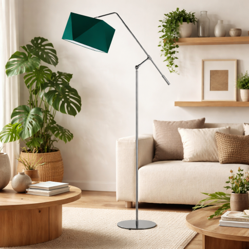 Szukasz nowoczesnej lampy podłogowej do salonu, sypialni lub pokoju dziecka? Chcesz mieć oświetlenie, które posłuży Ci latami? Jesteś w dobrym miejscu i o właściwym czasie. Nowoczesna lampa podłogowa na wysięgniku ruchomym spełni Twoje oczekiwania. Designerski klosz został wykonany z najwyższej jakości holenderskiej tkaniny tekstylnej z certyfikatem niepalności, podklejonej na folii PCV. Ramię lampy ma możliwość regulacji wysokości i kąta padania światła, dzięki czemu jej wymiary (wysokość - 170 cm, szerokość - 77 cm) są zmienne, dzięki czemu oprawa znajdzie zastosowanie w wielu przestrzeniach – tych mniejszych lub tych bardziej okazałych. Ten oryginalny model lampy stojącej jest wyposażony w wygodny włącznik nożny. Oprawa posiada miejsce na 1 tradycyjną żarówkę mocy max. 60W lub żarówkę ledową. Zestawienie współczesnego designu z komfortem użytkowania — to właśnie synonim lampy podłogowej na wysięgniku COLMA z abażurem w kolorze zieleni butelkowej.