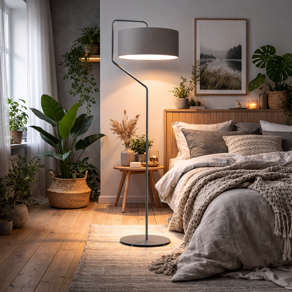 Dowolność wyboru koloru abażura i stelaża oraz minimalistyczna konstrukcja sprawiają, że lampa podłogowa TESALLIA pasuje do wielu aranżacji. Z jednej strony jest elegancka, dlatego idealnie współgra z klasycznymi pomieszczeniami. Z drugiej cechuje ją oryginalny, nowoczesny design, co sprawia, że staje się dodatkiem oświetleniowym wręcz stworzonym do współczesnych, minimalistycznych wnętrz. Co więcej, tkanina pokrywająca abażur dodaje całości projektu lekkości, dlatego bez obaw możesz postawić lampę stojącą TESALLIA w pokoju dziecka lub sypialni.