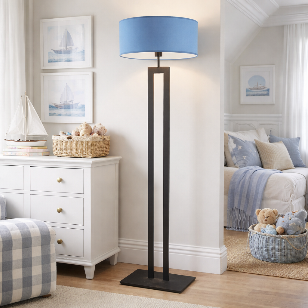 Lampa podłogowa dziecięca KALIFORNIA z niebieskim abażurem