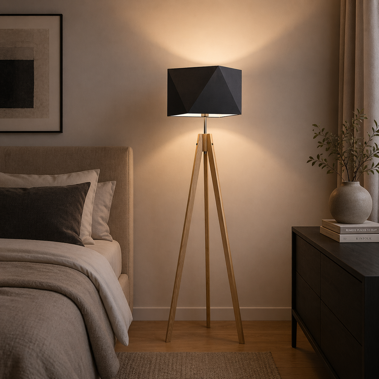 To doskonały wybór dla osób poszukujących drewnianej lampy stojącej do salonu, sypialni lub przestrzeni wypoczynkowej. Konstrukcja na trzech nogach zapewnia stabilność oraz lekkość wizualną, co sprawia, że lampa świetnie prezentuje się zarówno w większych jak i mniejszych pomieszczeniach. Lampa stojąca trójnóg to obecnie jedno z najczęściej wybieranych rozwiązań w nowoczesnych wnętrzach.