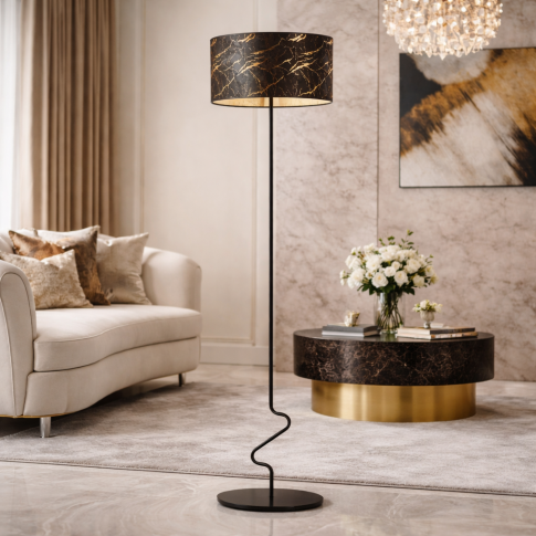 Czarna lampy stojące cieszą się dużym zainteresowaniem głównie dlatego, że ten typ oświetlenia to także doskonały sposób na dekorację, która razem z pozostałymi elementami aranżacji stworzy spójną całość. Za wyjątkowość lamp podłogowych odpowiadają między innymi futurystyczne klosze, finezyjne stelaże czy niekonwencjonalne konstrukcje, które dodają oświetleniu niepowtarzalnego charakteru. JERSEY MARMUR jest tego doskonałym przykładem. Ta z pozoru prosta i minimalistyczna lampa to prawdziwy hit wśród lamp podłogowych dostępnych w asortymencie sklepu polskiego producenta nowoczesnego oświetlenia LYSNE.PL. Zdecydowanie największe wrażenie robi stelaż, który przy podłodze wygięty został w fantazyjną falę tworząc tym samym ciekawą alternatywę ozdoby naszego salonu, sypialni czy gabinetu. W połączeniu z eleganckim marmurowym kloszem, JERSEY to odzwierciedlenie klasycznych, gustownych i wyrafinowanych wnętrz.