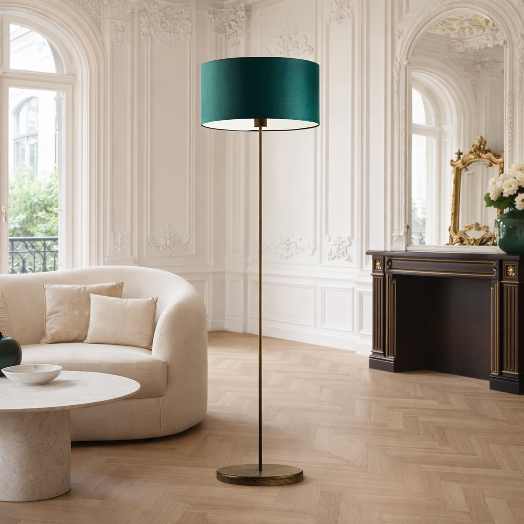 Lampa podłogowa w stylu urban jungle WERONA z abażurem zieleń butelkowa