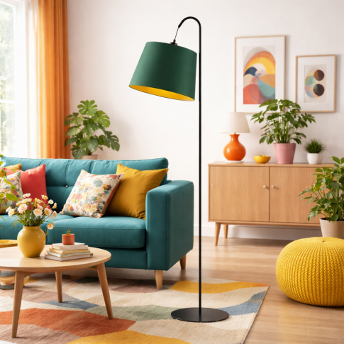 Ta stylowa lampa podłogowa łączy nowoczesny design z delikatnym urokiem klasyki, tworząc wyjątkowy element oświetlenia do każdego wnętrza. Lampa podłogowa wyposażona jest w elegancki, stożkowy abażur wykonany z wysokiej jakości tkaniny tekstylnej, który wykończony jest wewnątrz złotym kolorem. To subtelne wykończenie dodaje ciepła i luksusu, wprowadzając do pomieszczenia wyjątkowy nastrój, gdy lampa jest włączona. Wymiary klosza (wysokość - 28 cm, szerokość - 28 cm (górna średnica), 37 cm (dolna średnica)) są na tyle uniwersalne, że oprawa znajdzie swoje miejsce nawet w niewielkich przestrzeniach. Dodatkowo tkanninowy klosz występuje w kilku wariantach kolorystycznych: białym, czarnym, szarym, granatowym i butelkowej zieleni. Minimalistyczna konstrukcja podstawy podkreśla nowoczesny charakter oprawy a zakrzywione ramię dodaje jej nieco delikatnej lekkości. Taka konstrukcja sprawia, że lampa idealnie wpisuje się w aranżacje utrzymane w stylu glamour, gdzie elegancja i luksus grają główną rolę. TALLIN GOLD doskonale pasuje również do stylu nowoczesnego, w którym minimalizm i funkcjonalność są kluczowe. Ta designerska lampa stojąca będzie także świetnym dodatkiem do wnętrz w stylu eklektycznym, łączącym różne elementy i kolory, co pozwoli jej harmonijnie wpisać się w tak zróżnicowane otoczenie. Wysoka, smukła konstrukcja lampy nadaje jej wyrazistości, a jednocześnie sprawia, że jest ona idealnym rozwiązaniem do oświetlenia zarówno przestronnych wnętrz jak i tych, gdzie oszczędność miejsca gra pierwsze skrzypce.