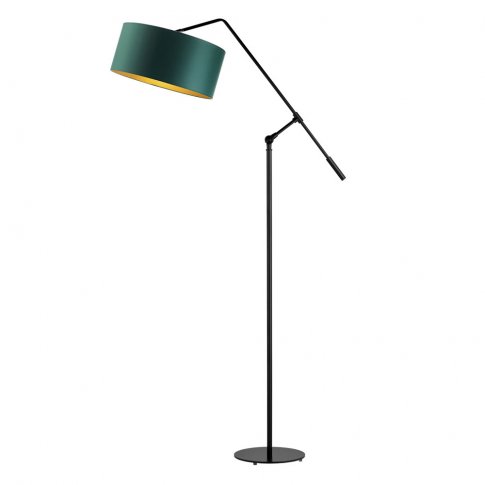 Czarna lampa stojąca regulowana z wysięgnikiem LIBERIA GOLD to doskonały wybór dla osób ceniących sobie elegancję i luksus w codziennym życiu. Jej tkaninowy abażur ze złotym wnętrzem nadaje wnętrzom wyjątkowego blasku, jednocześnie tworząc przytulną i ciepłą atmosferę. LIBERIA idealnie sprawdzi się zarówno w nowoczesnym salonie jak i sypialni czy domowym biurze wnosząc do pomieszczeń odrobinę luksusu i nowoczesnej elegancji. Funkcjonalny stelaż pozwala na regulację kąta padania światła, a włącznik nożny umieszczony na przewodzie zapewnia dodatkowy komfort użytkowania.