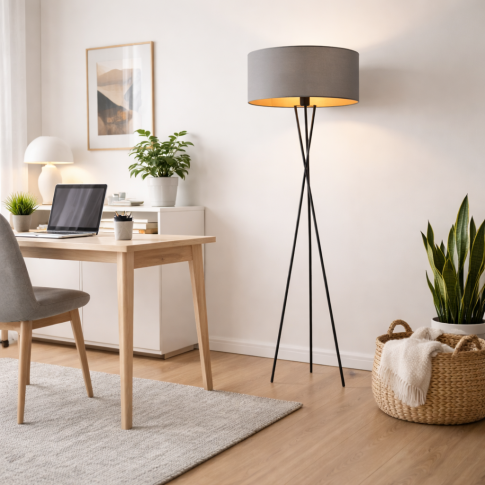 Trójnożna lampa stojąca PARYŻ GOLD to propozycja dla tych, którzy pragną wprowadzić do swojego wnętrza odrobinę luksusu i nowoczesności. Cylindryczny abażur o wymiarach 40 cm i 20 cm wysokości, wykonany z holenderskiej tkaniny tekstylnej podklejonej złotą folią PVC tworzy niesamowity efekt świetlny. Warto zwrócić uwagę, że abażur ze złotą amplą nie tylko pięknie wygląda, ale też subtelnie zmienia odcień światła, wprowadzając przytulną atmosferę do każdego pomieszczenia.