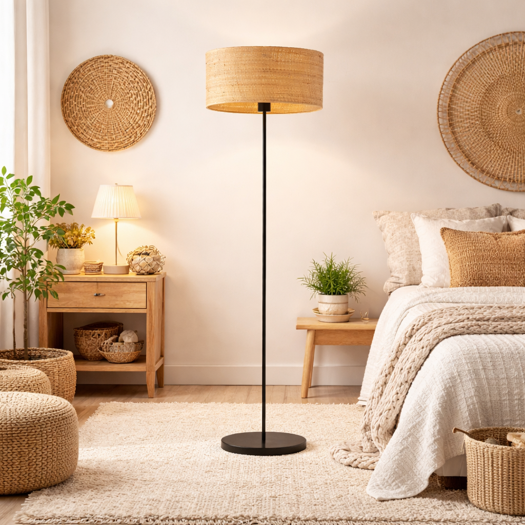 Rattanowa lampa podłogowa do sypialni WERONA BOHO to stylowe oświetlenie do salonu i sypialni, które doskonale wpisuje się w modny styl boho, japandi oraz wnętrza inspirowane naturą. Wykonana z naturalnego rattanu, zachwyca lekkością formy i subtelnym designem, który wprowadza do wnętrza ciepłą, przytulną atmosferę. Abażur o średnicy 40 cm i wysokości 20 cm delikatnie rozprasza światło, tworząc nastrojowe oświetlenie idealne do relaksu, czytania lub wieczornego odpoczynku. Dzięki swojej uniwersalnej stylistyce lampa podłogowa boho świetnie sprawdzi się zarówno w salonie, sypialni jak i w przestrzeni wypoczynkowej czy kąciku czytelniczym. Lampa stojąca z rattanu WERONA BOHO to nie tylko funkcjonalne oświetlenie podłogowe ale również wyjątkowy element dekoracyjny, który podkreśla charakter wnętrza i nadaje mu naturalnej elegancji. Idealny wybór dla osób poszukujących modnych lamp z rattanu, które łączą estetykę, jakość wykonania i ponadczasowy styl.