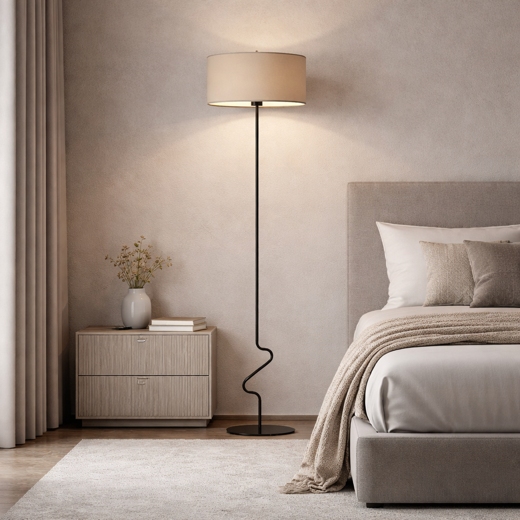 Lampa podłogowa z abażurem JERSEY za sprawą fantazyjnego stelaża jest wyjątkowa, a jednocześnie na tyle uniwersalna, by mogła odnaleźć się w każdym pomieszczeniu. Wysoka jakość polskich materiałów wykorzystanych do realizacji projektu świetnie pasuje do nowoczesnych i klasycznych aranżacji. Z kolei jej praktyczne funkcje, takie jak np. wygodny włącznik nożny, ułatwiają oraz przyspieszają włączanie i wyłączanie lampy.