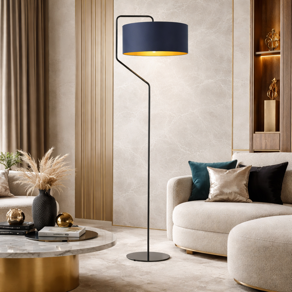 Lampa podłogowa w stylu glamour TESALLIA GOLD to synonim wyrafinowanego stylu i elegancji, stworzona z myślą o tych, którzy pragną wnieść do swojego wnętrza odrobinę luksusu. Jej unikalny design łączy w sobie nowoczesność z klasycznymi akcentami, a szeroki wybór kolorów i wykończeń sprawia, że TESALLIA GOLD doskonale komponuje się z różnorodnymi aranżacjami. Abażur oprawy dostępny jest w 5 awangardowych kolorach, które podkreślają jej wyjątkowy charakter. Możesz wybierać spośród białego ze złotym wnętrzem o połyskującym wykończeniu, szarego, butelkowej zieleni, granatu oraz czerni, gdzie wnętrza abażurów wykończone są w złotym macie. To zestawienie sprawia, że TESALLIA GOLD nie tylko doskonale rozprasza światło, tworząc przytulną atmosferę, ale także staje się wyrazistym elementem dekoracyjnym. Stelaż lampy TESALLIA GOLD dostępny jest w standardowych kolorach: klasycznej czerni, eleganckiej bieli oraz stylowym srebrze. Dla tych, którzy pragną jeszcze bardziej podkreślić luksusowy charakter oprawy, oferowane są także wykończenia w chromie, stali szczotkowanej oraz starym złocie, które dodatkowo wzbogacają całość o unikalny akcent (dostępne za dodatkową opłatą).