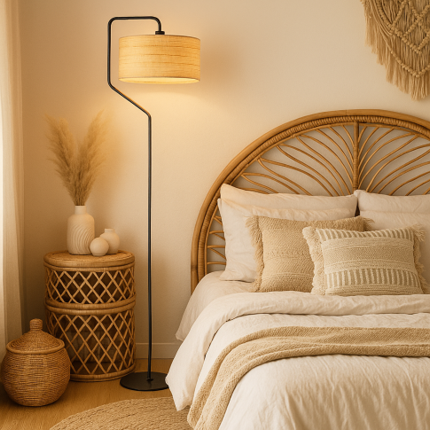 Lampa podłogowa TESALLIA BOHO to nie tylko praktyczne źródło światła, ale również wyjątkowy element dekoracyjny, który może stać się prawdziwym sercem każdego pomieszczenia. Dzięki swoim proporcjom oprawa idealnie wpasowuje się w przestrzeń, nie dominując jej, ale jednocześnie przyciągając wzrok swoim unikatowym designem. Wysoka na 156 cm i szeroka na 40 cm, doskonale sprawdza się jako oświetlenie strefy relaksu w salonie, gdzie jej subtelne światło tworzy ciepłą, przytulną atmosferę, idealną do wieczornego wypoczynku. W sypialni TESALLIA BOHO może pełnić funkcję zarówno lampy podłogowej do czytania, ustawionej przy fotelu lub łóżku, jak i dekoracyjnego akcentu, który podkreśla charakter wnętrza. W domowym biurze jej naturalny rattanowy klosz dodaje wnętrzu świeżości i sprzyja koncentracji tworząc przyjazne środowisko do pracy. Uniwersalny design lampy podłogowej z abażurem TESALLIA BOHO sprawia, że świetnie komponuje się z różnorodnymi stylami aranżacji. W połączeniu z drewnianymi meblami podkreśla naturalny, ciepły charakter pomieszczenia. Z kolei w towarzystwie materiałów takich jak len, bawełna czy juta, TESALLIA wpisuje się w estetykę boho, nadając wnętrzu lekkości i swobody. Rustykalna lampa podłogowa równie dobrze prezentuje się w nowoczesnych wnętrzach, gdzie może stanowić ciekawy kontrast dla bardziej industrialnych lub minimalistycznych elementów wystroju. Jej rattanowy klosz, choć nawiązujący do natury, dodaje również nuty elegancji, co czyni ją wszechstronnym dodatkiem pasującym do różnych koncepcji aranżacyjnych. TESALLIA BOHO to zatem wybór nie tylko praktyczny, ale i dekoracyjny, który z łatwością dopasujesz do swojego wnętrza, niezależnie od jego stylu.
